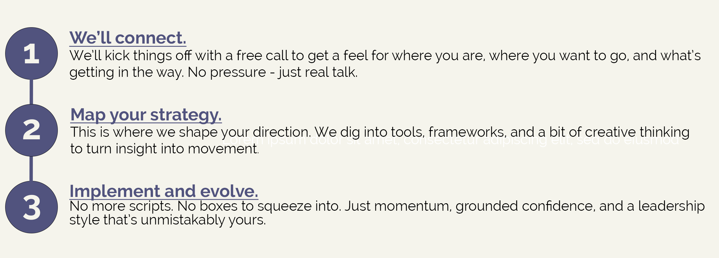 1:1 coaching for leaders who are ready to stop second-guessing and start making moves that matter.