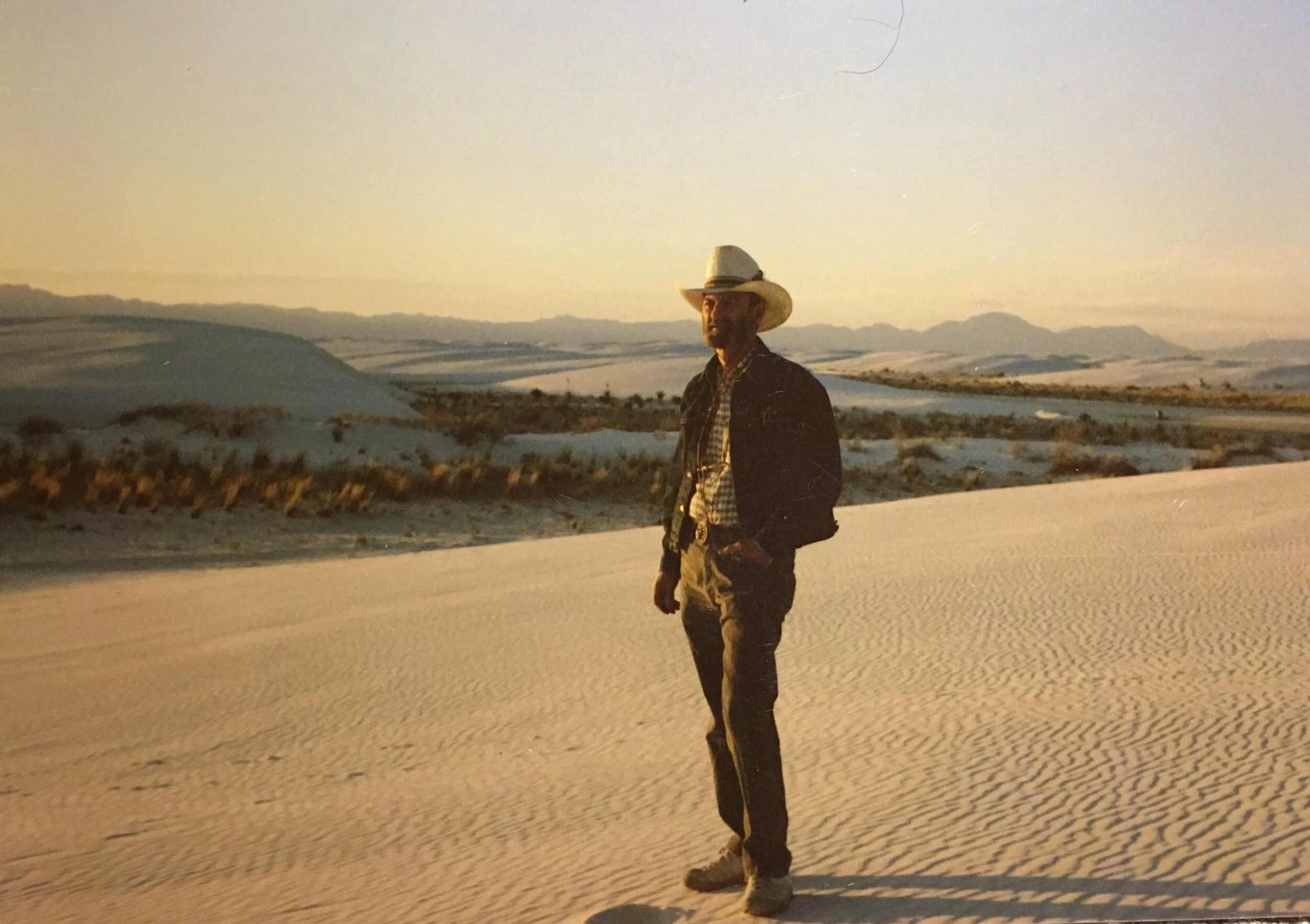 One of my favorite photos of my dad, is of him standing on a dune at White Sands National Park. The sun is casting a vintage golden glow creating a magical ambiance and producing an appearance of being in another world. In the photo he doesn’t look the same as I remember. He’s a little more handsome, hip and relaxed than the man I call dad.